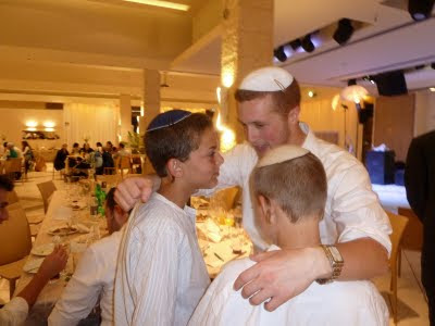 (Jeff imparts words of wisdom to my two oldest – Matan and Yehuda – as he gives them a Bracha for their future.)