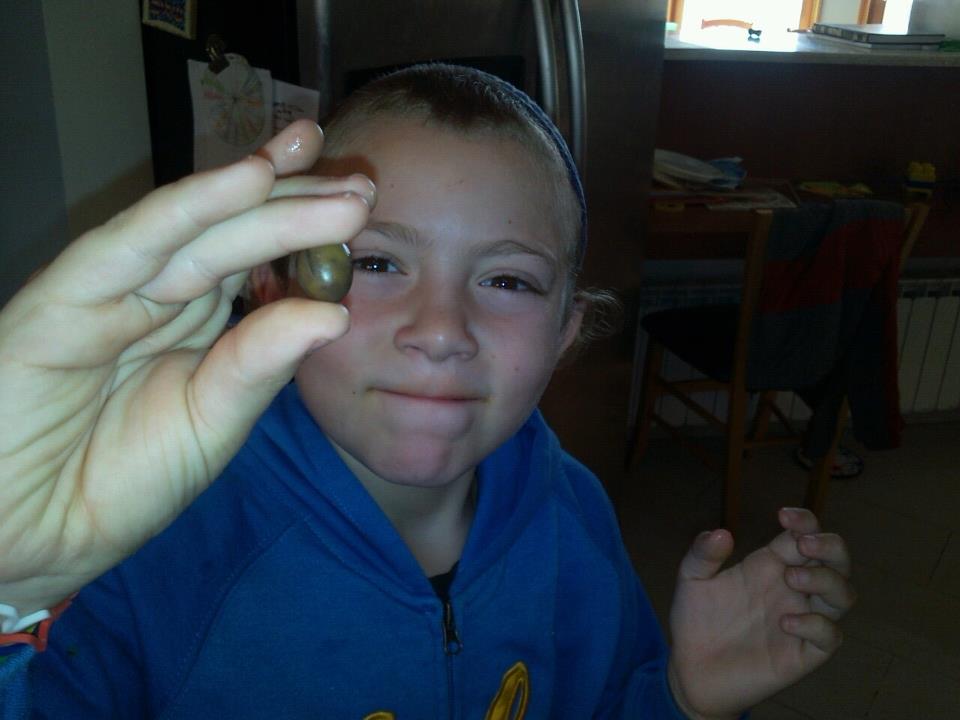 But boy, was she intent on telling us something. Eventually, one of the boys whispered to me, “Mommy – she’s telling you about the olives!”