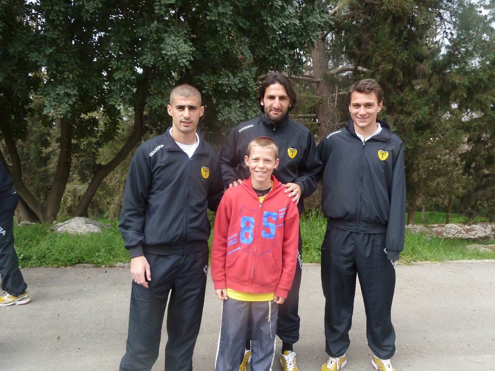 | Matan and Yehuda with a Beitar Jerusalem player whose name I’m sure I’m supposed to know. |