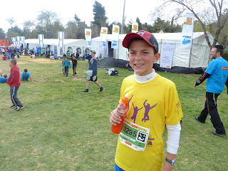 Then, we went over to wait for Matan. When the 10k runners came pouring in, I started to panic just a little that we weren’t going to find Matan. But, eventually, there he was, smiling from ear to ear. He finished in one hour and three minutes, got his medal and felt very proud of himself.