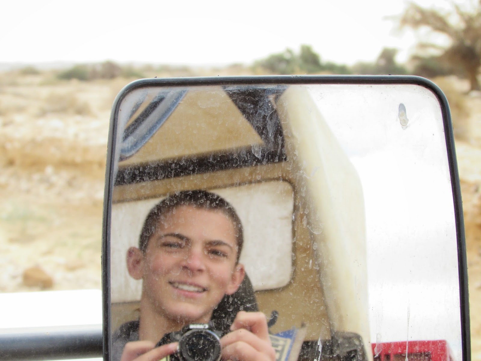 Day 2 began with a journey to the Antelope Ranch. This is an expansive ranch in the Arava where a couple decided to plant their roots and bring in endangered animals. Visitors can enjoy their quite impressive Noah’s Ark that is filled with everything from birds and bunnies to peacocks and roosters. Then, they can drive through the area in a car and see zebras, antelope, wildebeest, Nubian ibex and more. The have an African wild ass, one of only eighty left in the world (and one of six in Israel), that we got to see as well. The guide gave us a great overview of the place and the animals that are there. And of course, Yakir had to try on the antlers for size.