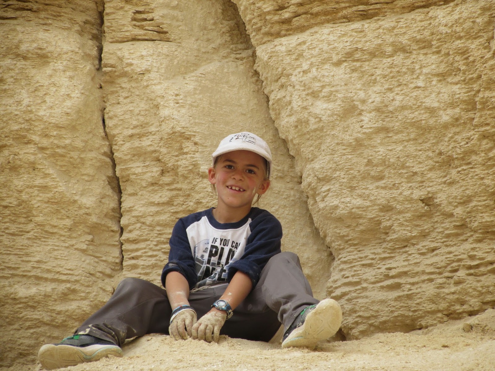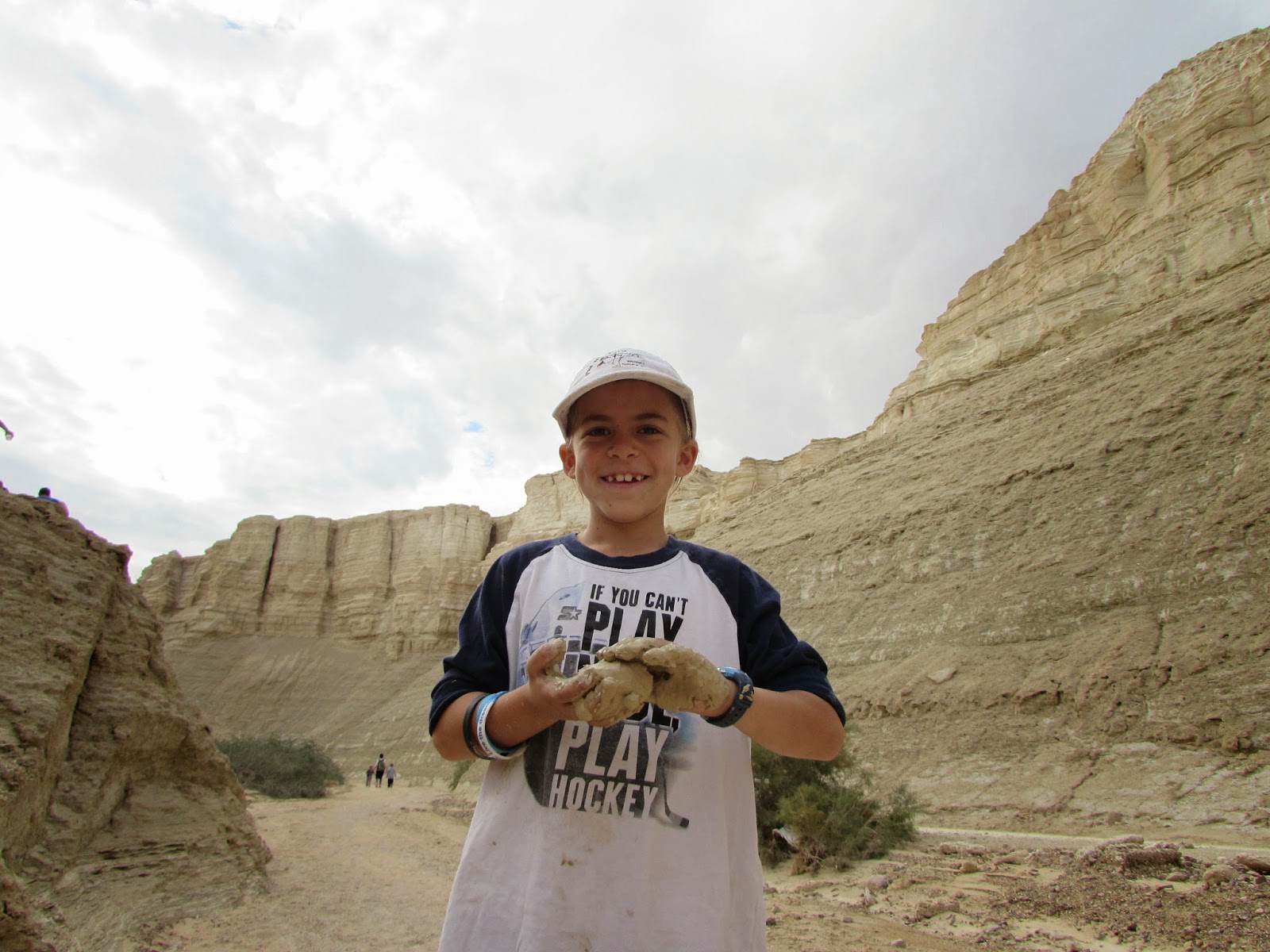 Then, we went nearby to the Nachal Pratzim where we enjoyed an hour walk inside the canyon walls. It was absolutely breathtaking and the kids loved playing with the chalky walls and making mud piles where they could. Is that surprising?