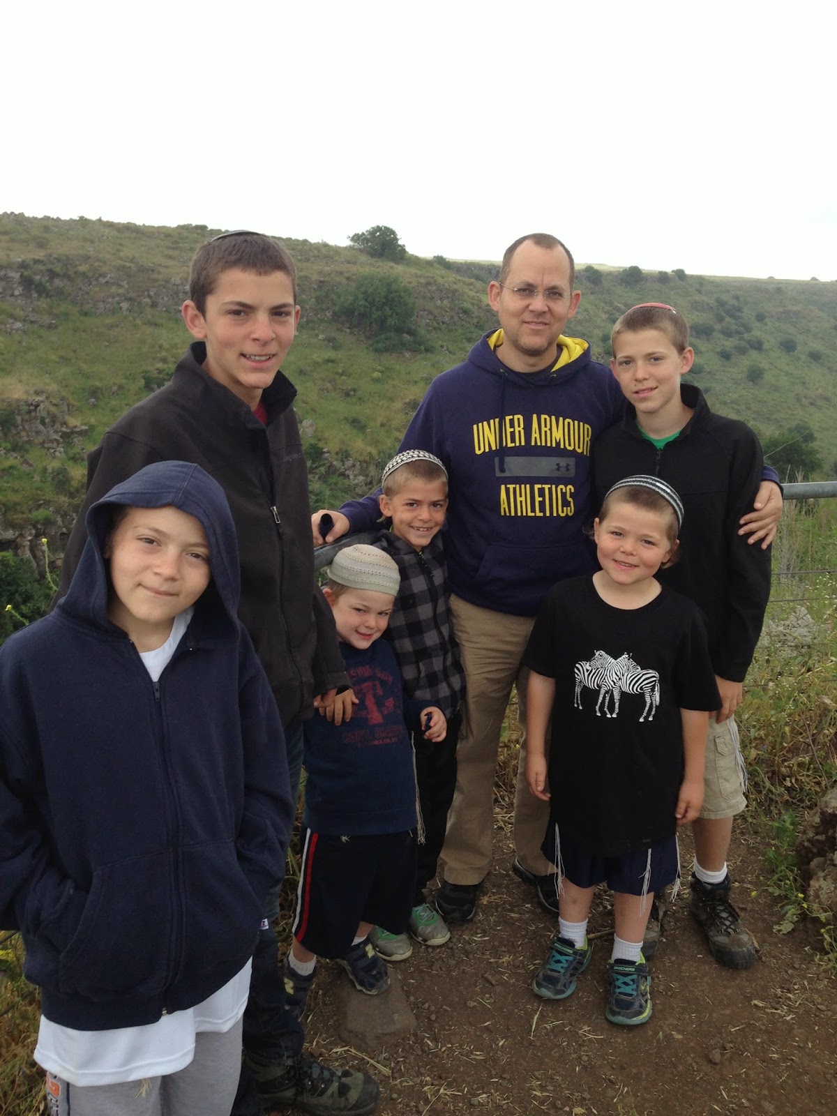 Except…..that after about ten minutes of walking, Amichai managed to fall and open up his newly stitched knee. You’ve got to be kidding me, I thought, as I watched the entire vacation go up in bloody knees and hopping children. But, after this cute picture, Amichai and I hobbled back to the starting point while the rest of the group continued on. When they finished, Ruth and Josh went into town and got some good medical materials and managed to patch Amichai up. We went to a maayan (*a natural flowing spring/watering hole) where the kids swam and enjoyed. We made a barbeque and relaxed in the house…and went to sleep to be ready for Day Two.